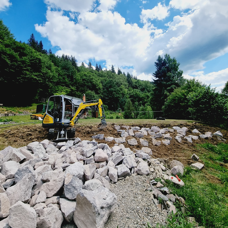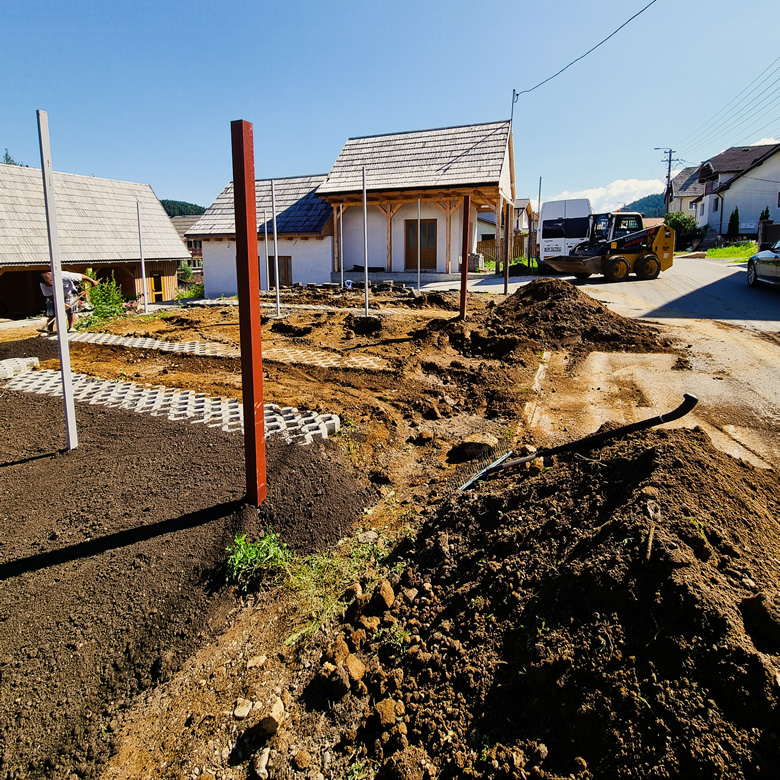 Prima etapă a execuției, căreia îi acordăm o atenție deosebită, deoarece determină pașii următori. Fie că vorbim despre drenarea apei, construcția zidurilor de sprijin și a teraselor, pregătirea bazelor pentru diversele placări sau îmbunătățirea solului, sau chiar înlocuirea întregului pământ fertil, pregătirea terenului corespunzător este esențială pentru continuarea lucrărilor. În paralel cu pregătirea terenului, se desfășoară lucrările de utilități: determinarea traseului conductelor de apă și electricitate, precum și pregătirea terenului pentru sistemul de irigații și iluminat.