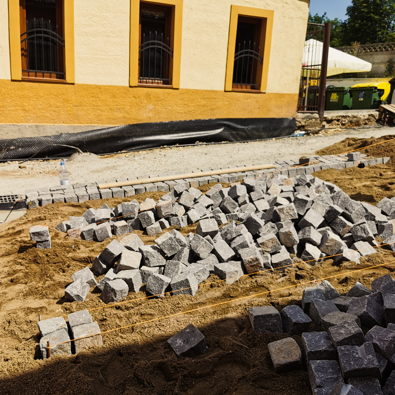 A doua etapă și cea mai importantă în procesul de execuție este amenajarea suprafețelor de mers. Fie că vorbim despre alei pietruite sau pavate, diverse dimensiuni de pavele, sau un covor din cauciuc sub zona de joacă - tipul, culoarea și textura acestora influențează semnificativ aspectul general și conceptul grădinii. Configurarea suprafețelor de mers necesită întotdeauna expertiză, deoarece acestea trebuie să se potrivească planurilor vizuale elaborate de designer.